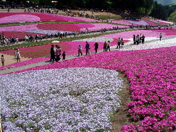 絨毯のような芝桜。綺麗でしたけど、匂いが凄いです。倒れそうになりました(←花粉症ですし)